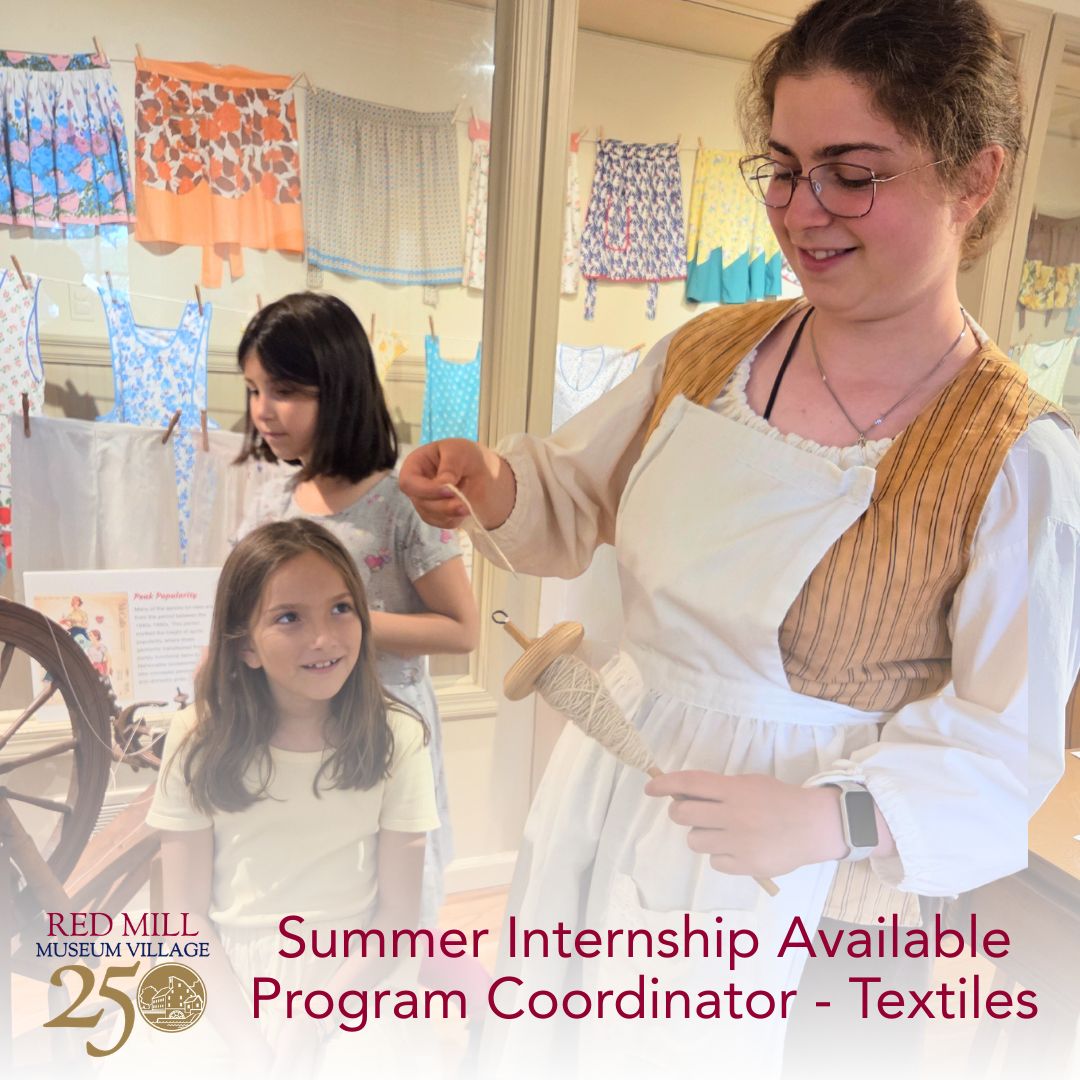 The Red Mill Museum Village is seeking a Program Coordinator Intern to support textile-based programming during our Discovery Days. This role is ideal for someone who enjoys working with people, is curious about traditional handcrafts, and is excited to help bring history to life through hands-on experiences.